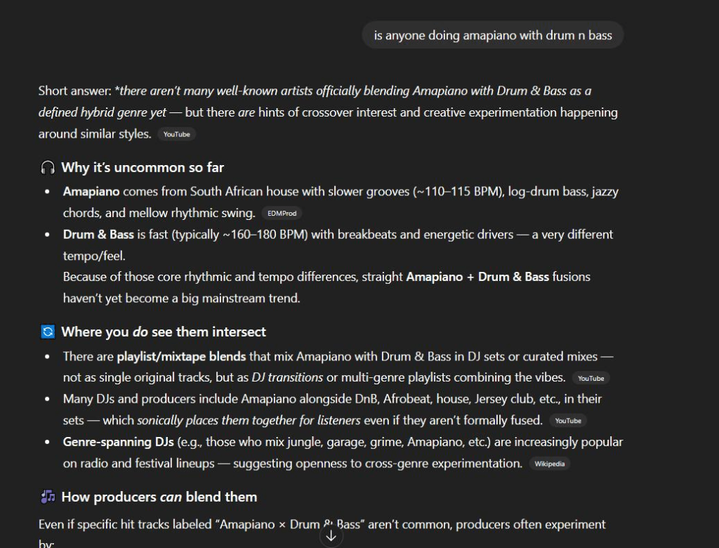 Amapiano showed up, as I was browsing, and hijacked the holidays for me (endless scrolling through viral dance videos). What an earworm! I need to do something with this newfound insiration. I wondered if anyone had done a drum’n’bass style crossover. Apparently not. I also want to pin this locally, where I live (Chilliwack); breakbeats, jungle, and whatever kind of anthem old town and five corners ends up with by New Year’s. Time to get busy, blaze a trail in some unexplored genre-bend territory, local brew 😉